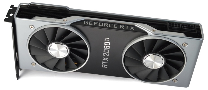 GeForce RTX 2080 Ti занимает привычные два слота. Полная длина почти 27 см. GeForce RTX 2080 Ti Founders Edition выглядит несколько проще старых моделей GeForce GTX 10, но в общих очертаниях узнается некая преемственность и знакомый индустриальный стиль в оформлении.