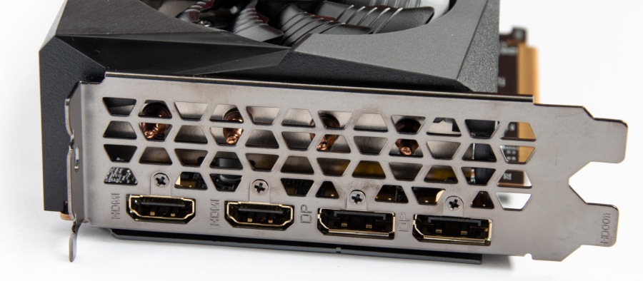 На заднюю панель выведено по два порта DisplayPort и HDMI.