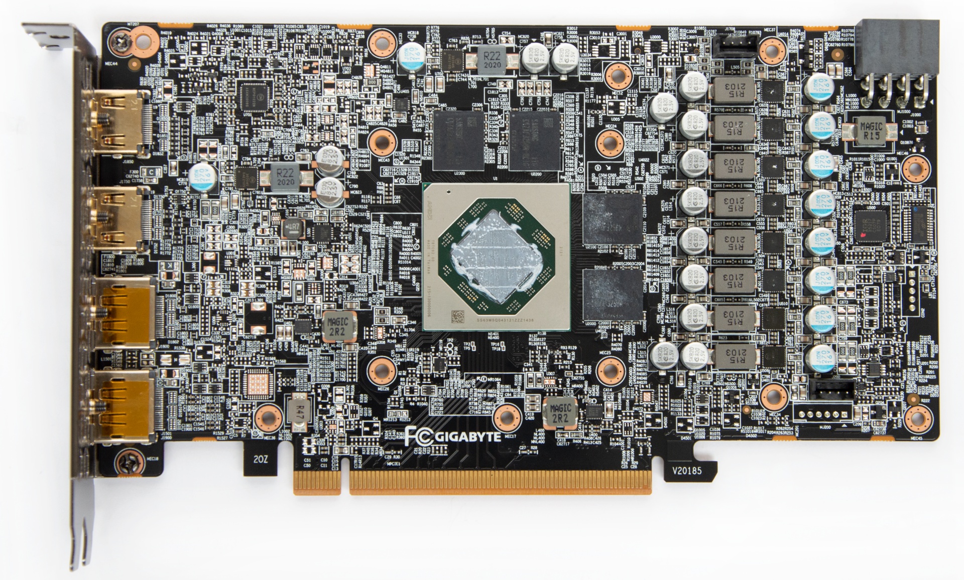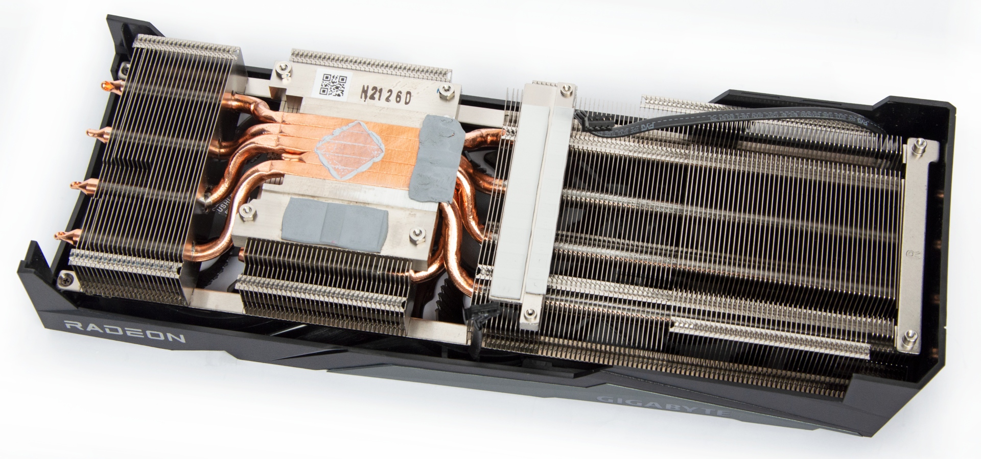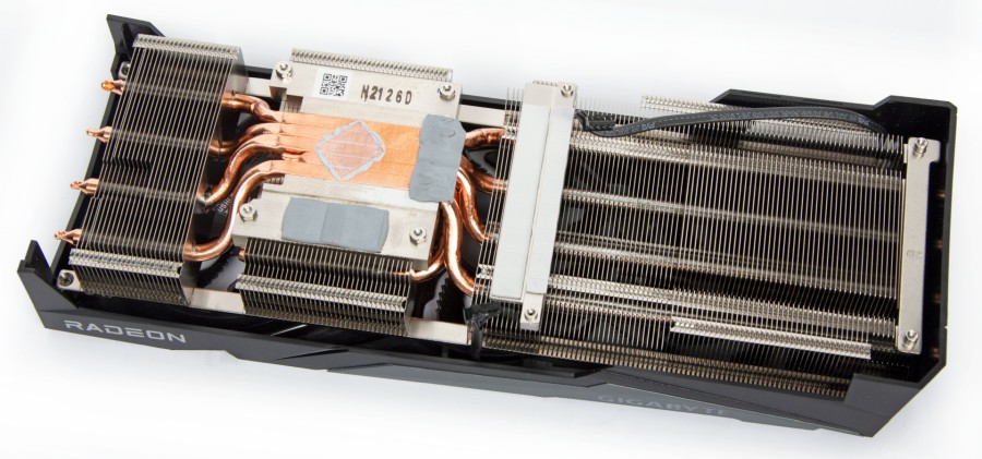 Традиционно Gigabyte использует единый радиатор для всех компонентов на плате. Через центральную часть радиатора проходит пять тепловых трубок. Они тщательно подогнаны друг к другу для уменьшения щелей.