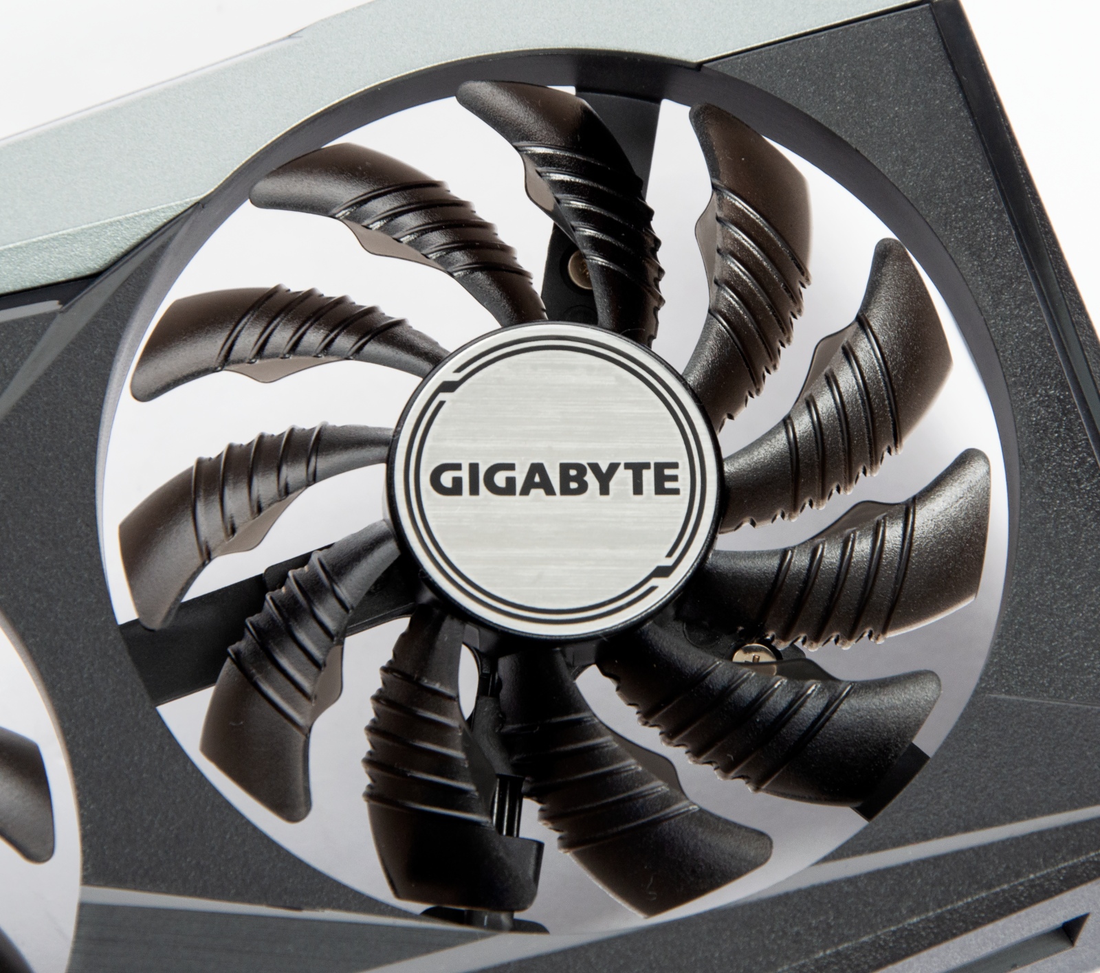 У данной модели крупные габариты — длина 28 см, толщина более двух слотов (5 см). Внешний дизайн выдержан в стандартном стиле Gigabyte. Охлаждение накрыто пластиковым кожухом со вставками цвета «металлик».