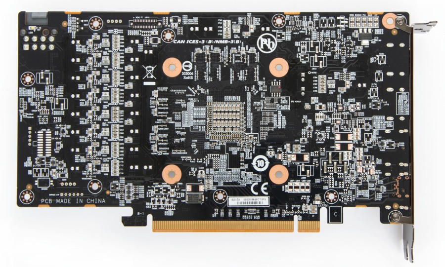 Бэкплейт тоже участвует в охлаждении благодаря термопрокладкам в зоне под GPU и чипами памяти.