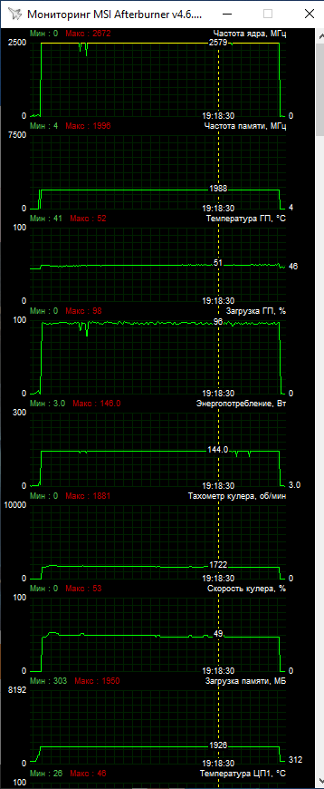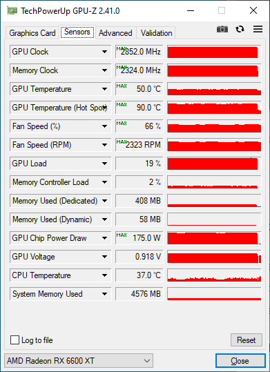 Реальные Boost-частоты оказались на уровне ASUS ROG-STRIX-RX6600XT-O8G-GAMING (у обоих видеокарт заявлены одинаковые частотные характеристики). В стресс-тесте 3DMark Time Spy частоты близки к 2600 МГц, в тесте Red Dead Redemption 2 до 2700 МГц. Максимальная точка Boost 2744 МГц.