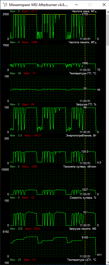 В таком режиме вентиляторы раскручивались до 2000–2300 об/мин. При долгой нагрузке пиковая температура горячей точки GPU могла достигать 90 °C.