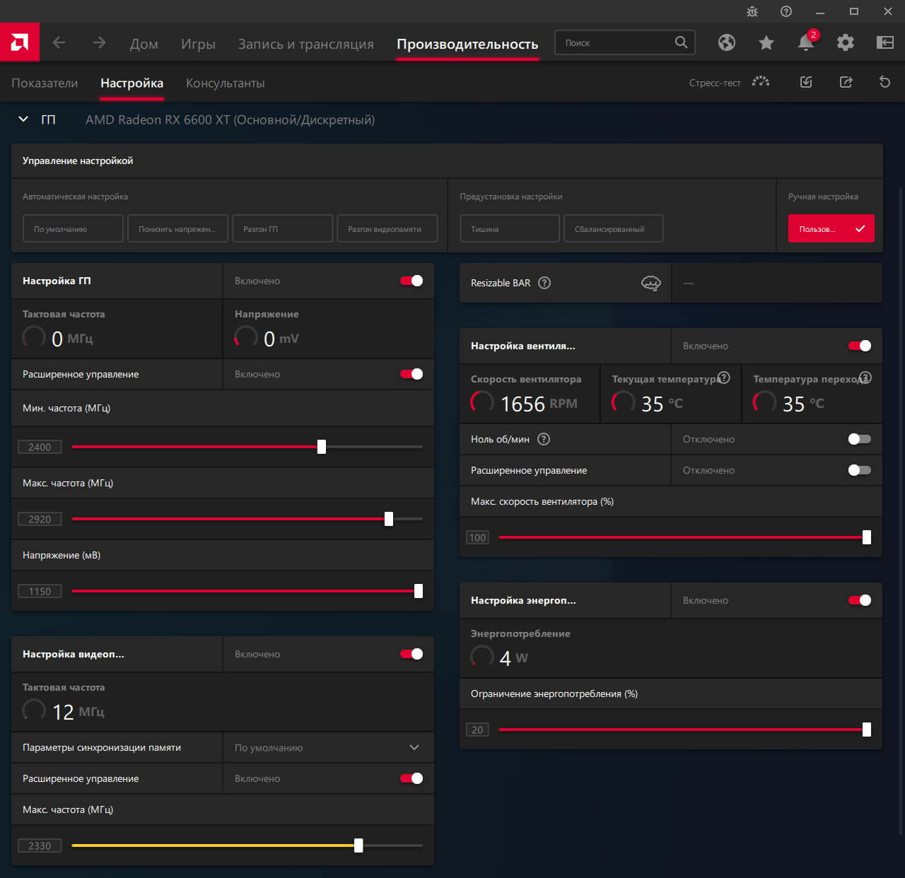 Для разгона использовалось программное обеспечение AMD. Наша финальная конфигурация настроек отражена ниже.
