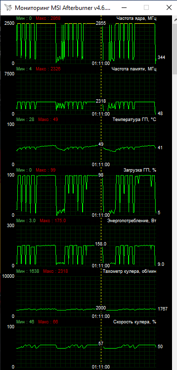 В стресс-тесте 3DMark Time Spy реальные частоты были близки 2800 МГц, а в Red Dead Redemption 2 более 2850 МГц. И это самые высокие частоты в разгоне для всех протестированных нами Radeon RX 6600 XT.