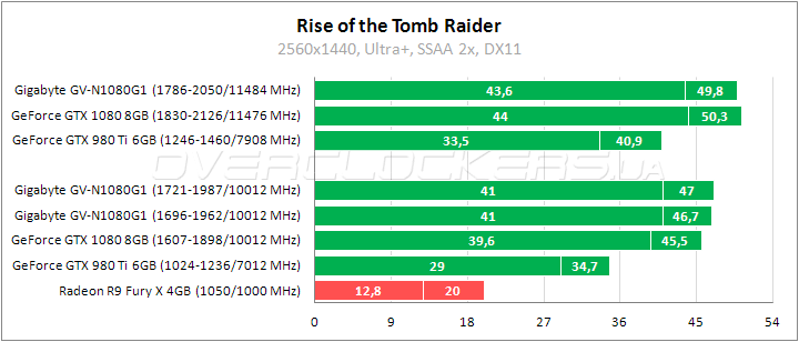 В игре Rise of the Tomb Raider мы ограничились одним тестовым режимом, но при тяжелом режиме сглаживания с высокой загрузкой видеопамяти.