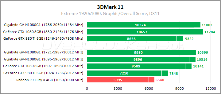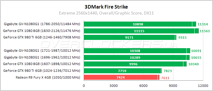 | Видеоадаптер | Gigabyte GTX 1080 G1 Gaming | GeForce GTX 1080 | GeForce GTX 980 Ti | Radeon R9 Fury X |
