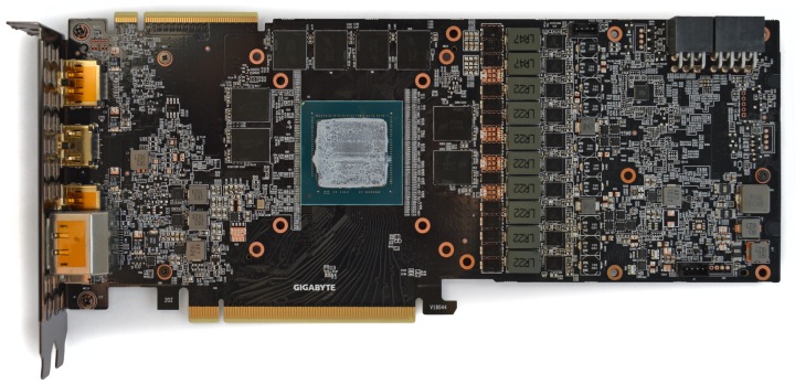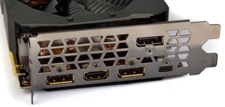 У Gigabyte стандартный набор разъемов для вывода изображения: три DisplayPort, один HDMI и один VirtualLink USB Type-C. Четыре порта имеют позолоченные контакты для защиты от окисления.
