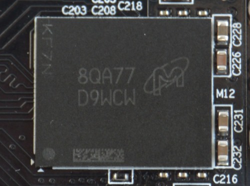 Объем памяти восемь гигабайт, набран микросхемами Micron с маркировкой 8QA77 D9WCW.