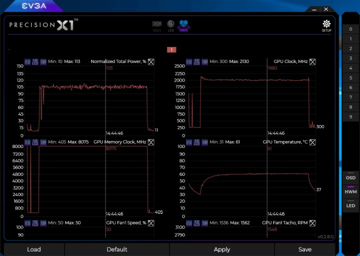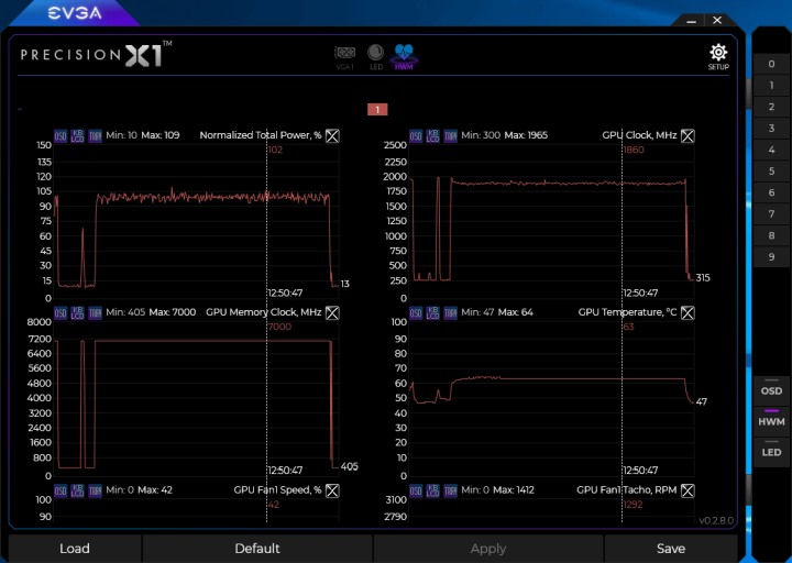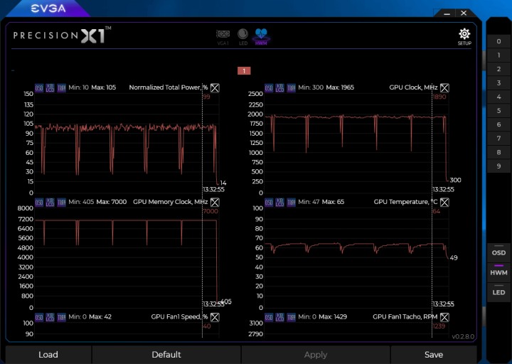 Для мониторинга и разгона мы применяли EVGA Precision X1, хотя с этим справится и фирменная утилита Aorus Engine.