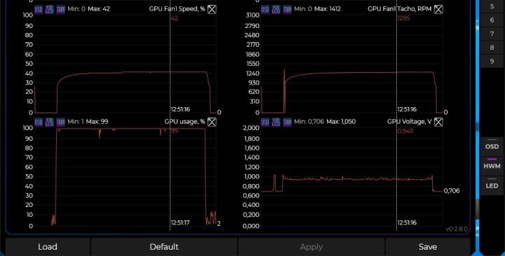 Встроенный сканер разгона показал возможность повышения частоты ядра на 97 МГц, хотя мы смогли увеличить частоту на 120 МГц с сохранением стабильности в играх.
