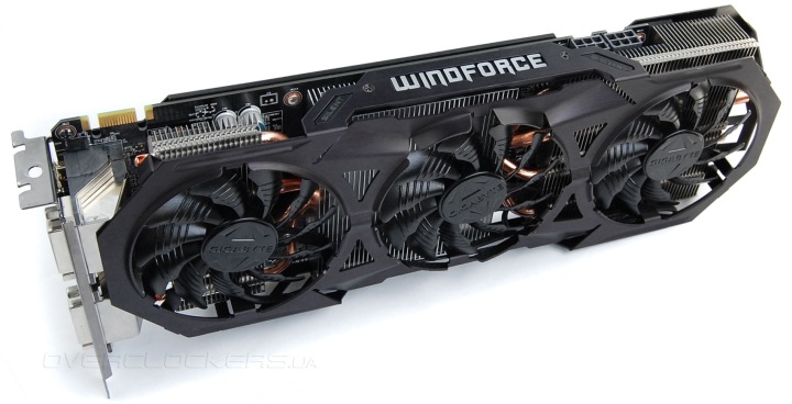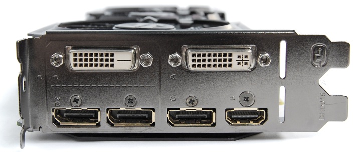 Набор интерфейсных разъемов у Gigabyte таков: два DVI, три DisplayPort и один HDMI.