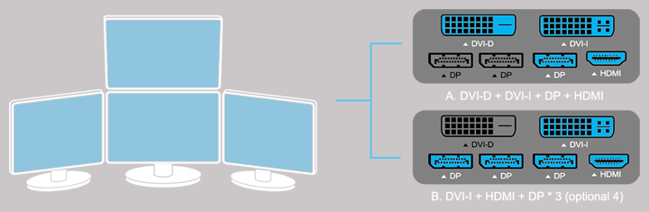 Gigabyte поддерживает технологию Flex Display, предлагающую простое автоопределение и настройку устройств в сложных мультимониторных конфигурациях до четырех дисплеев с разным типом интерфейса. Достаточно подключить их по одной из предложенных схем, чтобы сразу получить правильно сориентированную рабочую область на всех мониторах.