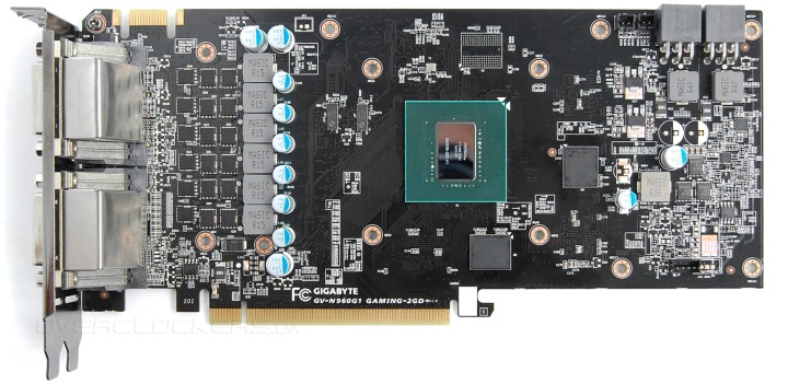 Дизайн печатной платы идентичен PCB младшей модели Gigabyte GV-N960WF2OC-2GD.