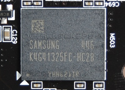 Два гигабайта памяти набрано четырьмя микросхемами Samsung K4G41325FC-HC28.