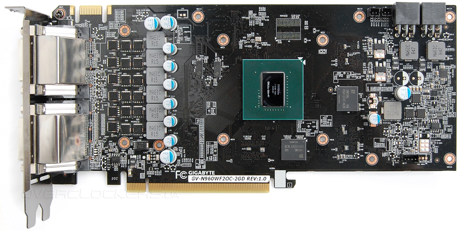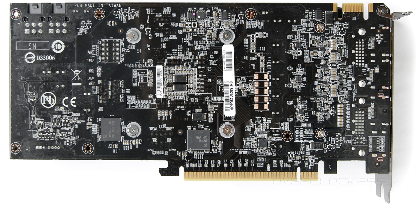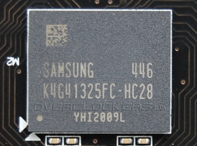 Два гигабайта памяти набраны четырьмя микросхемами Samsung K4G41325FC-HC28. Стандартные чипы для GeForce GTX 960.