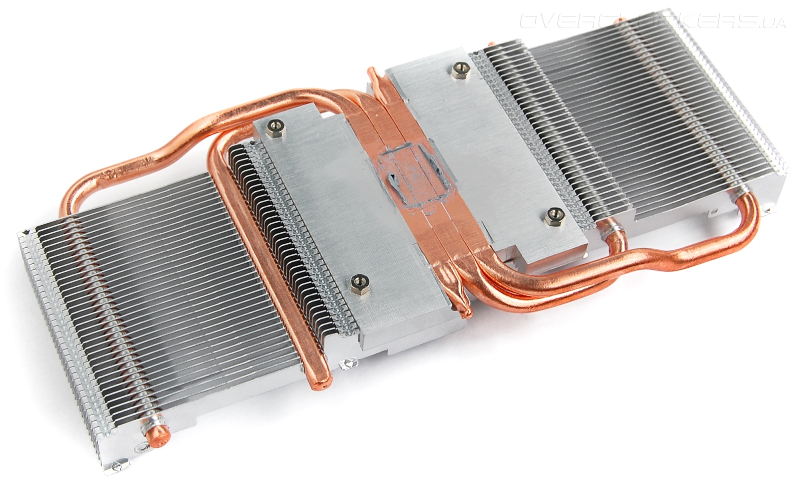 Трубки зафиксированы внутри массивного алюминиевого основания. Места соприкосновения промазаны термопастой.