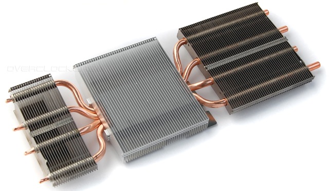 Тепло рассеивается через три секции тонких пластин. Центральная секция зажата в «сердечнике» и напаяна на нижнюю пластину. Боковые секции нанизаны на тепловые трубки.