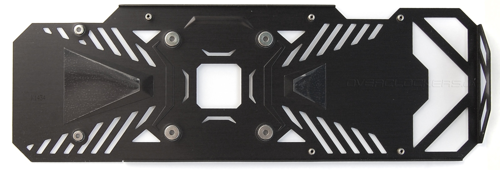 Пластина, закрывающая тыльную сторону платы, не контактирует ни с какими компонентами, выступая только в роли усилительного элемента, предотвращающего деформацию текстолита под весом охлаждения.