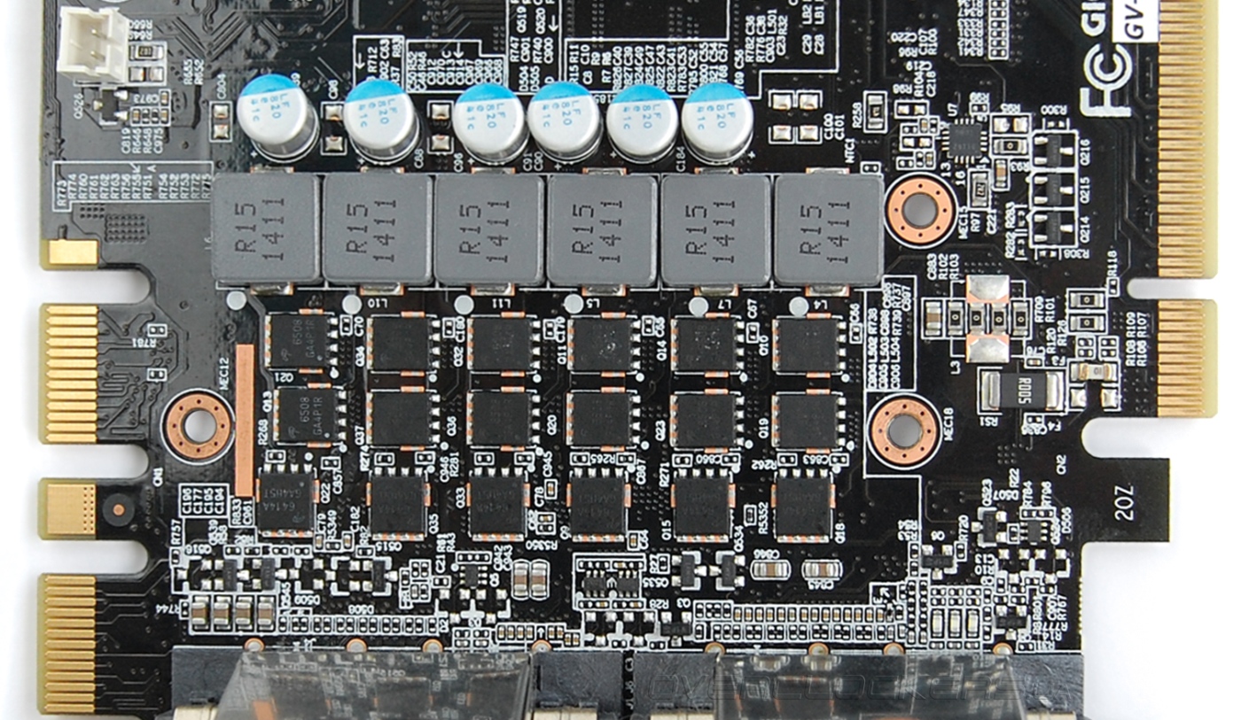 Преобразователь напряжения GPU насчитывает шесть фаз вместо четырех у референса.