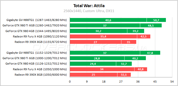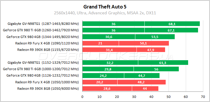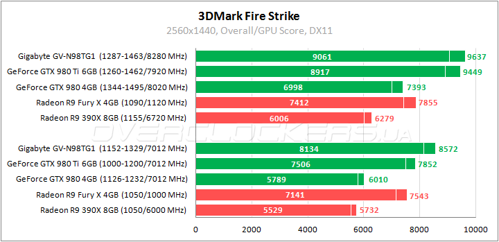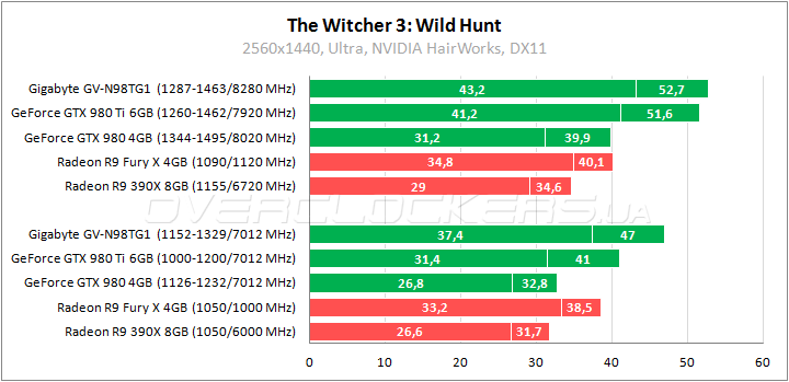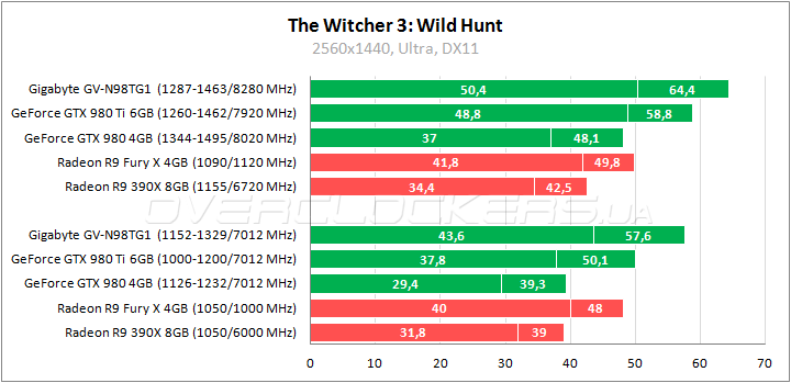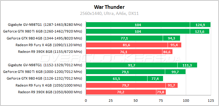 Radeon R9 Fury X уже наступает на пятки обычной версии GeForce GTX 980 Ti, но ничего не может противопоставить Gigabyte. Последний быстрее на 12–14%, с разгоном ускоряясь еще на 11%.