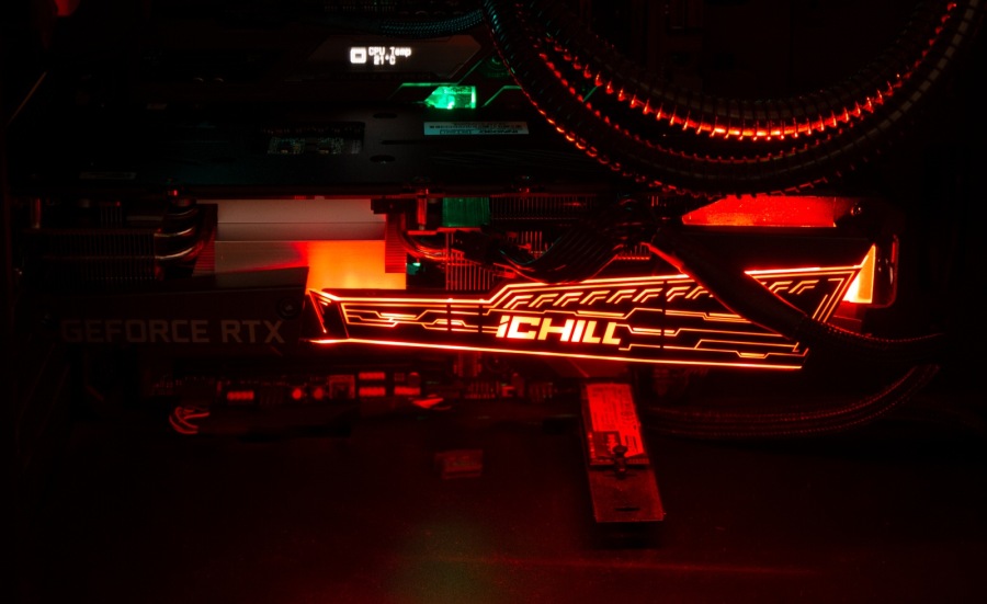 Название видеокарты INNO3D GeForce RTX 3060 iChill X3 Red намекает на красную подсветку. И эта яркая подсветка является спорным моментом, поскольку GeForce никак не ассоциируется с красным цветом.