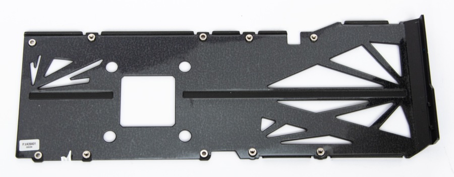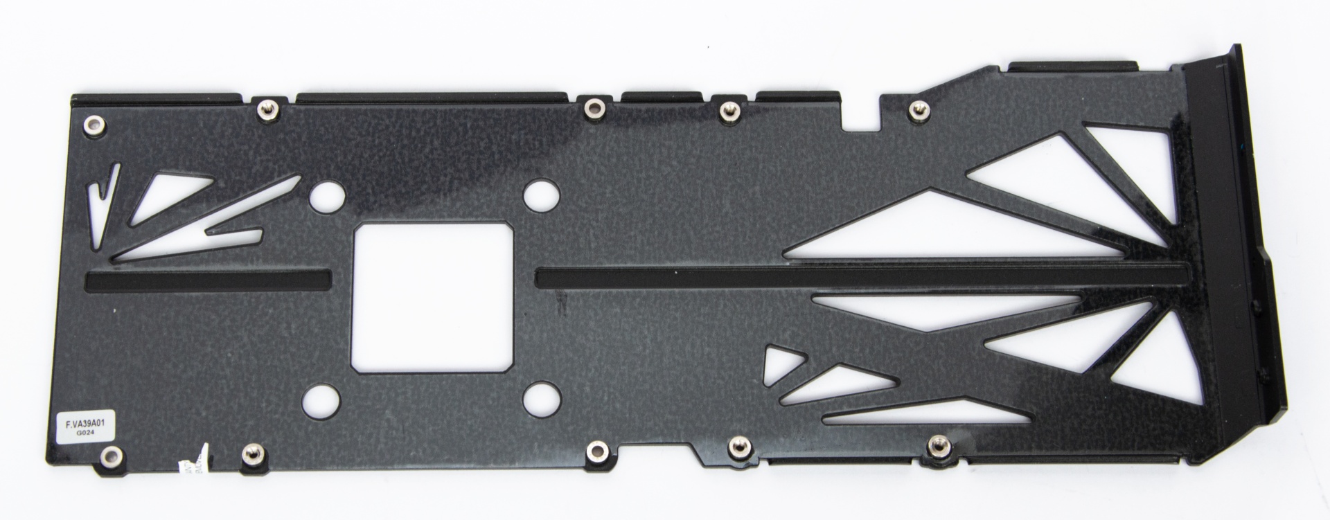 Теперь взглянем на систему охлаждения. Разбор начинается с демонтажа бэкплейта. Это не радиатор, а усилительная пластина, которая придает жесткости конструкции и защищает текстолит.