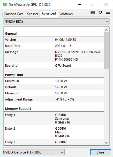 Для видеокарты предусмотрен заводской разгон. При базовой частоте ядра 1320 МГц средний Boost Clock повышен с 1777 до 1837 МГц. Эффективная частота памяти составляет 15000 МГц. Мощность ограничена стандартным значением 170 Вт.