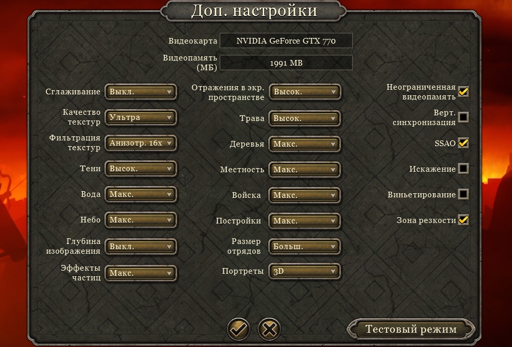 Все параметры графики на Ultra. Мультисемплинг MSAA в режиме 4x.