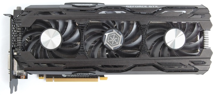 Визуально iChill GeForce GTX 1080 Ti X3 Ultra напоминает iChill GeForce GTX 1060 X3, только кожух окрашен в черный цвет. Сам кожух столь велик, что частично прикрывает все три вентилятора. В случае GeForce GTX 1060 это было не критично из-за низкого TDP. Но в данном случае такой непрактичный подход может иметь более ощутимые негативные последствия. В старых видеокартах iChill кожух состоял из отдельных съемных элементов, которые легко демонтировались без разбора охлаждения. Теперь это невозможно, поэтому придется мириться с лишней «броней».