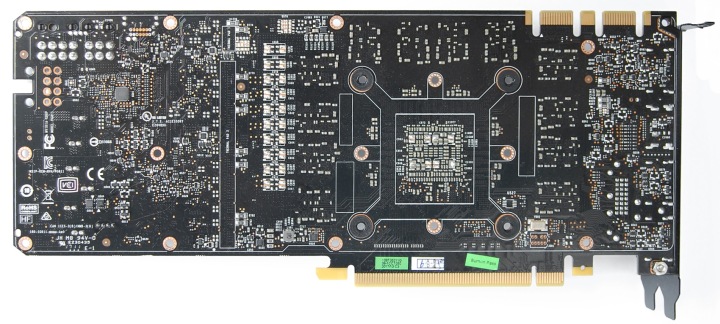 На задней панели пять разъемов для вывода изображения. К стандартному набору из трех DisplayPort и одного HDMI добавлен порт DVI, которого нет у референсных GeForce GTX 1080 Ti.
