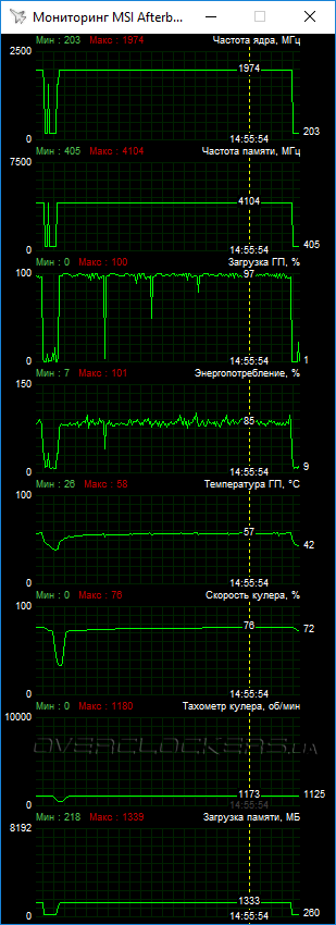 А вот разгон не удивил. Итоговые частоты на уровне других нереференсных моделей. Но мы не раз отмечали, что решения семейства Pascal не отличаются между собой в частотном потенциале. Мощное питание и качественная элементная база не дают каких-то явных преимуществ для разгона, но обеспечат лучшую стабильность при максимальных частотах. Базовую частоту удалось повысить до 1699 МГц при пиковом значении Boost на уровне 2101 МГц. Память удалось разогнать без сбоев до 9456 МГц.