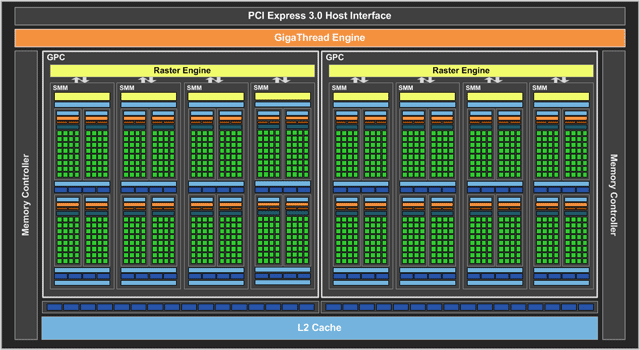 GeForce GTX 960 базируется на новом графическом процессоре GM206, который является средним вариантом между GM107 и GM204. Два кластера GPC по четыре крупных мультипроцессорных блока SMM в каждом.