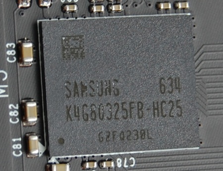 Восемь гигабайт памяти набрано восемью микросхемами Samsung K4G80325FB-HC25.