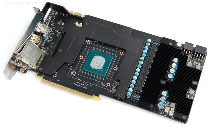 После демонтажа кулера мы видим две пластины, которые накрывают разные элементы на плате. Отдельная пластина предназначена для микросхем памяти.