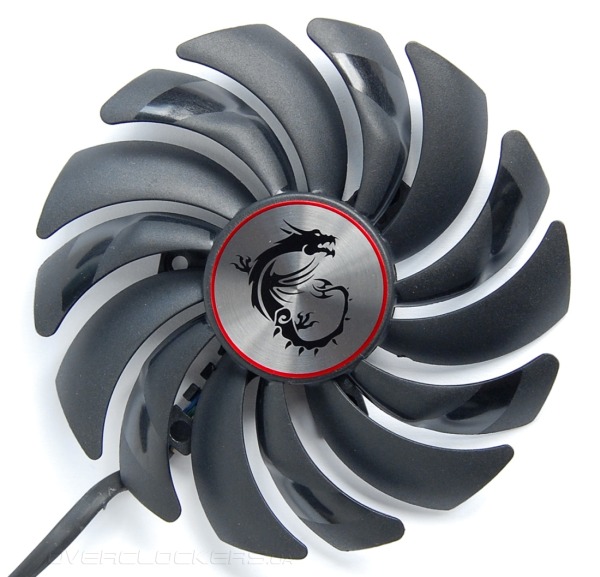 На боковой грани кулера расположено окошко с миниатюрной версией логотипа и надписью MSI. Эти элементы в рабочем состоянии подсвечиваются, как и красные зубцы в правой части кожуха.