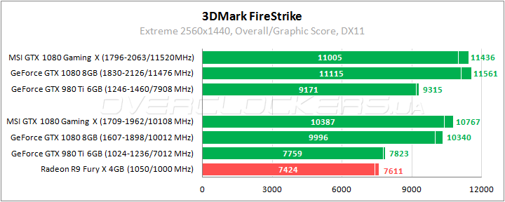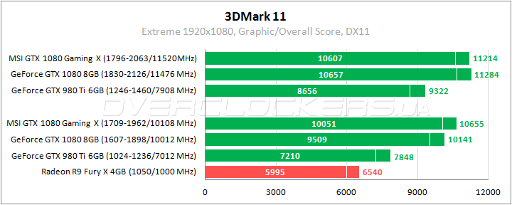 | Видеоадаптер | MSI GTX 1080 Gaming X 8G | GeForce GTX 1080 | GeForce GTX 980 Ti | Radeon R9 Fury X |