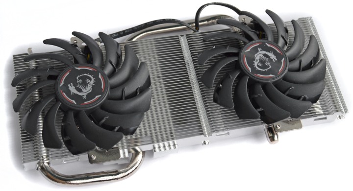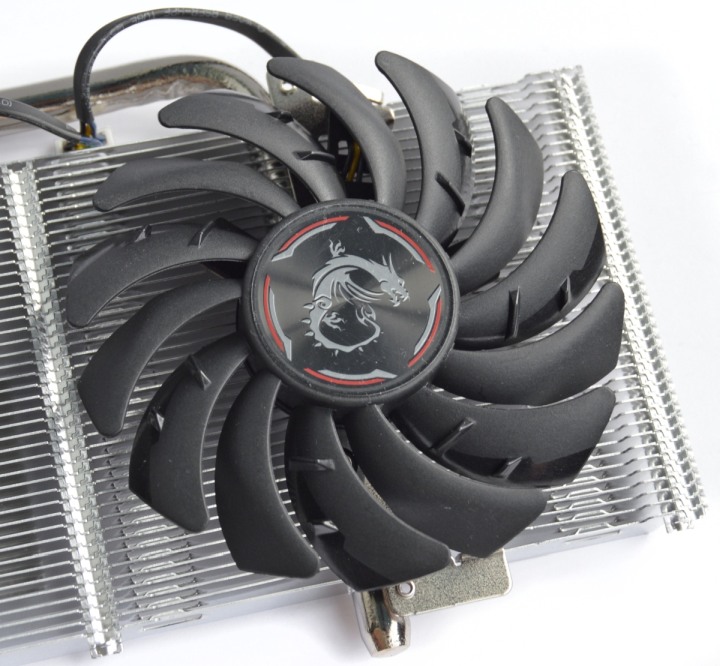 Для охлаждения используется упрощенная версия кулера Twin Frozr 7. Он использует довольно крупный радиатор из тонких пластин и одну толстую тепловую трубку. Все это выглядит весьма серьезно на фоне того, как бюджетные GeForce GTX 1650 обходятся простым цельным радиатором.