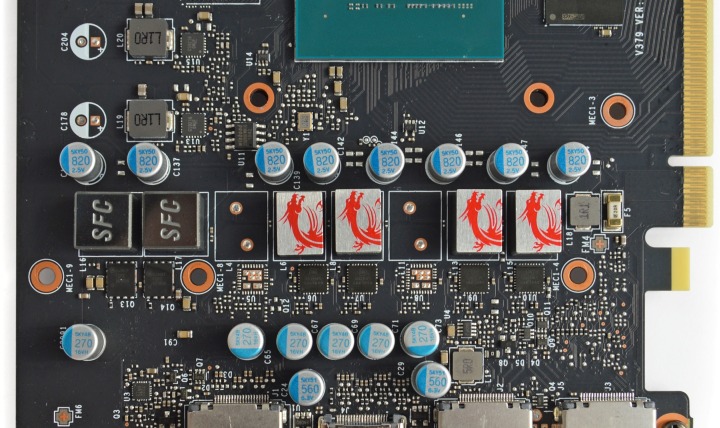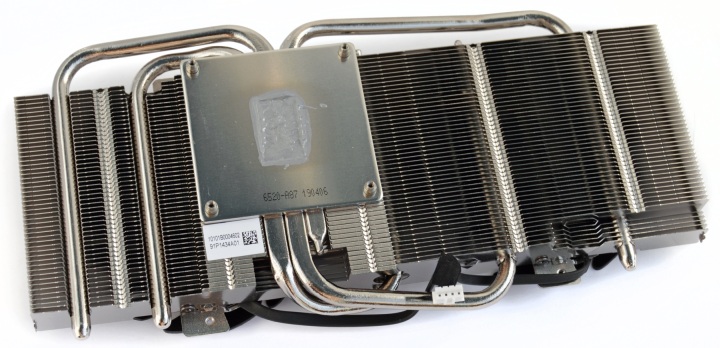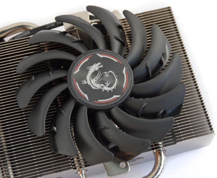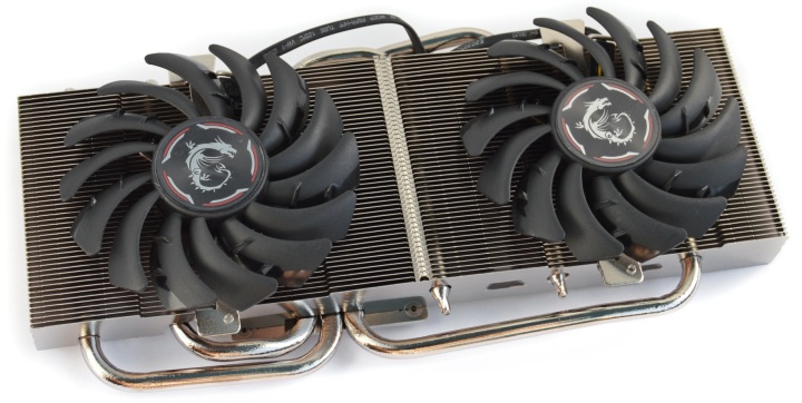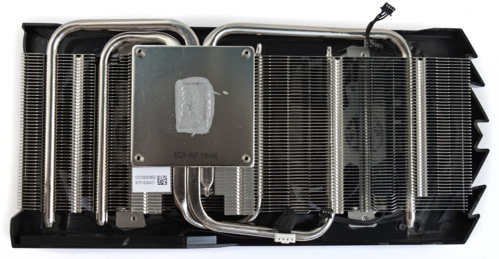 Система охлаждения идентична той, что мы видели в Ti-версии MSI. Это ровное основание, три тепловые трубки и радиатор длиной около 22 см.