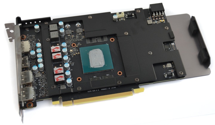 Для силовых элементов и микросхем памяти предусмотрен отдельный радиатор в виде пластины, накрывающей плату.