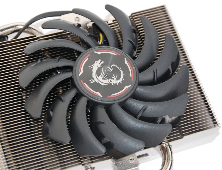 Кожух имеет привычные для Gaming очертания. Используется два вентилятора с особым дизайном лопастей. На вентиляторы нанесен логотип-дракон.