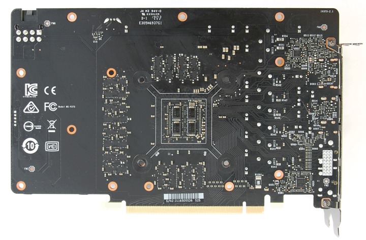 Задняя сторона видеокарты закрыта металлической пластиной.
