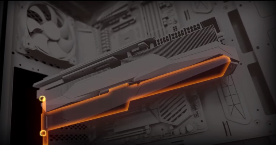 Как и все модели Gaming, видеокарта оснащена подсвечиваемыми элементами вокруг центрального вентилятора и боковой подсвечиваемой полосой.