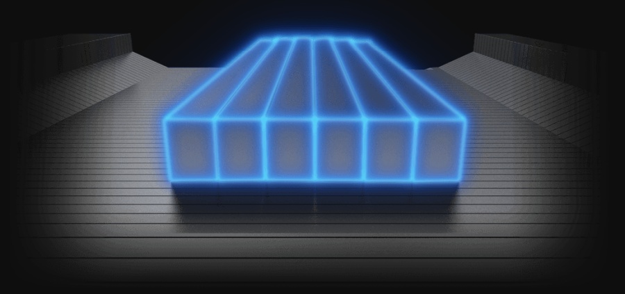 На боковой грани есть подсвечиваемые логотипы. В углу присутствуют два восьмиконтактных разъема питания.