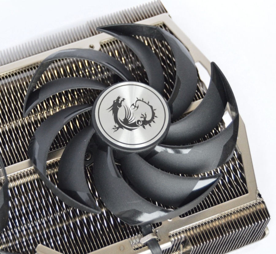 Для обдува используются вентиляторы MSI TorX Fan 4.0 со сдвоенными лопастями. Их особая форма усиливает воздушный поток. Улучшает продуваемость и форма пластин с волнистой поверхностью верхних граней. Диаметр крыльчатки 95 мм.