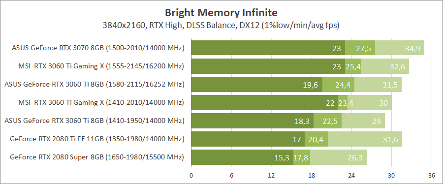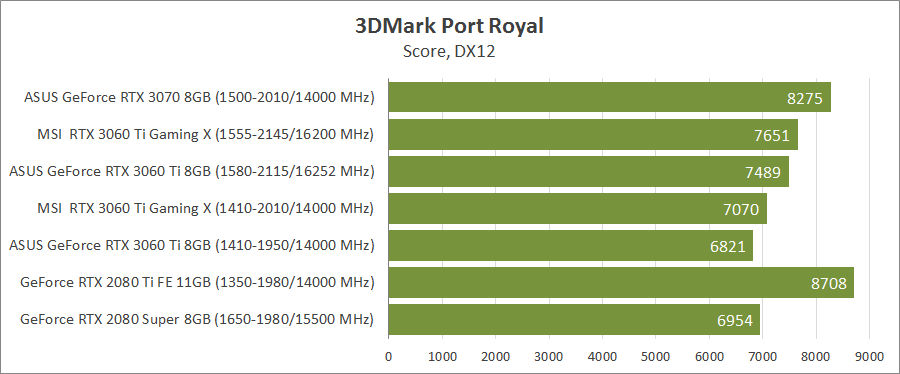 В этом тяжелом RTX-тесте начальная производительность MSI GeForce RTX 3060 Ti выше, чем у GeForce RTX 2080 Ti.