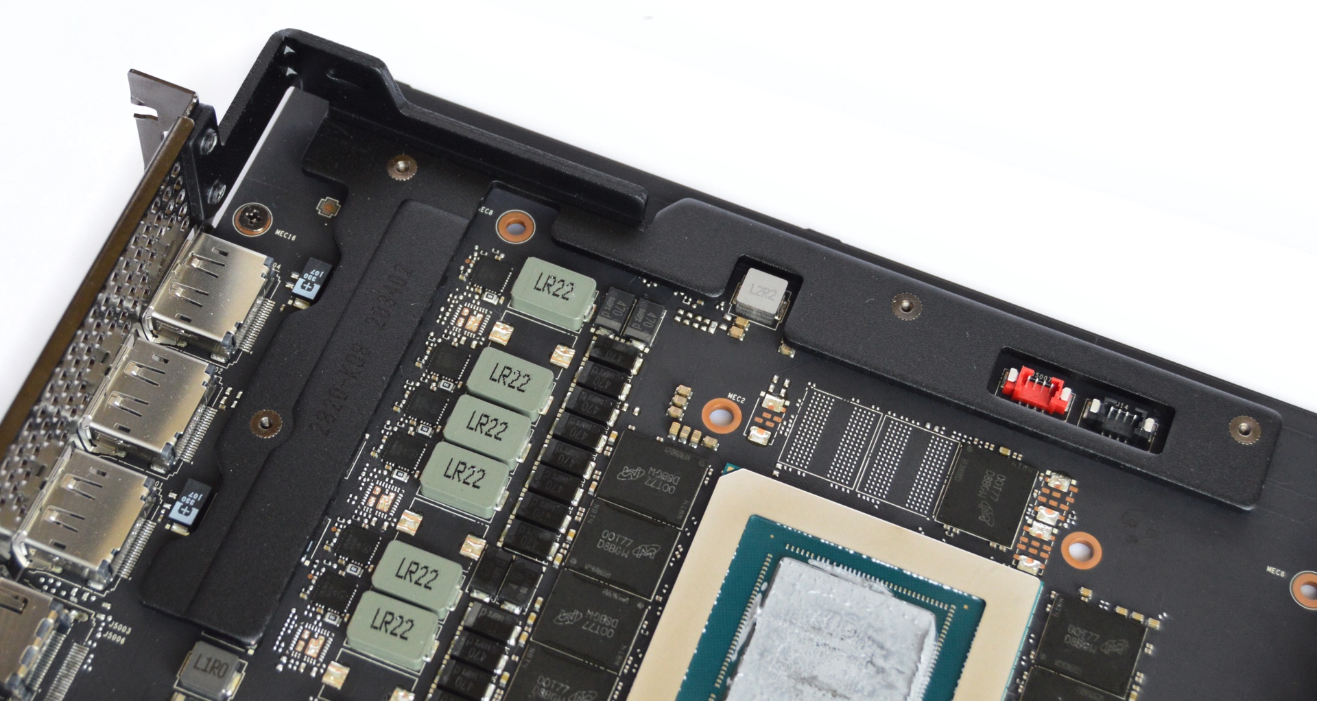 Полная маркировка графического чипа: GA102-200-KD-A1. Десять гигабайт памяти набрано таким же количеством микросхем Micron с маркировкой OOT77 D8BGW.
