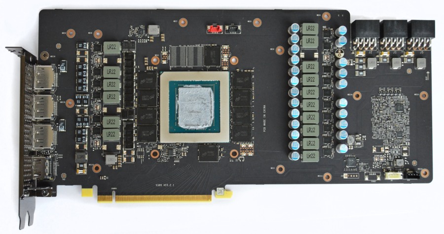 Видеокарта использует крупную печатную плату, которая выполнена с использованием дополнительных медных слоев для лучшего рассеивания тепла. В сочетании с качественной элементной базой и охлаждением всех важных элементов на плате это обеспечивает повышенную надежность устройства.