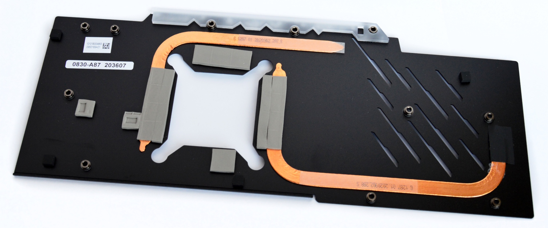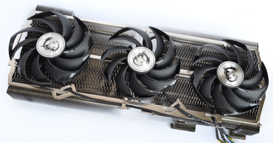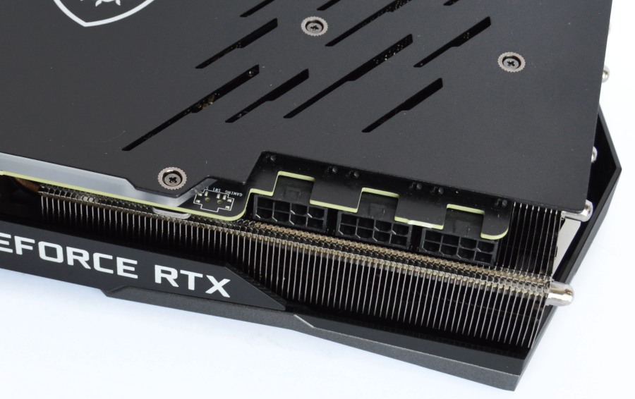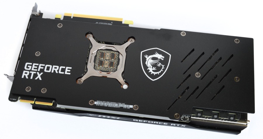 В отличие от MSI RTX 3080 Gaming с пластиково-графеновым бэкплейтом у старшей модели используется металлическая пластина. Также на пластине есть две плоские тепловые трубки, которые контактируют с микросхемами памяти.
