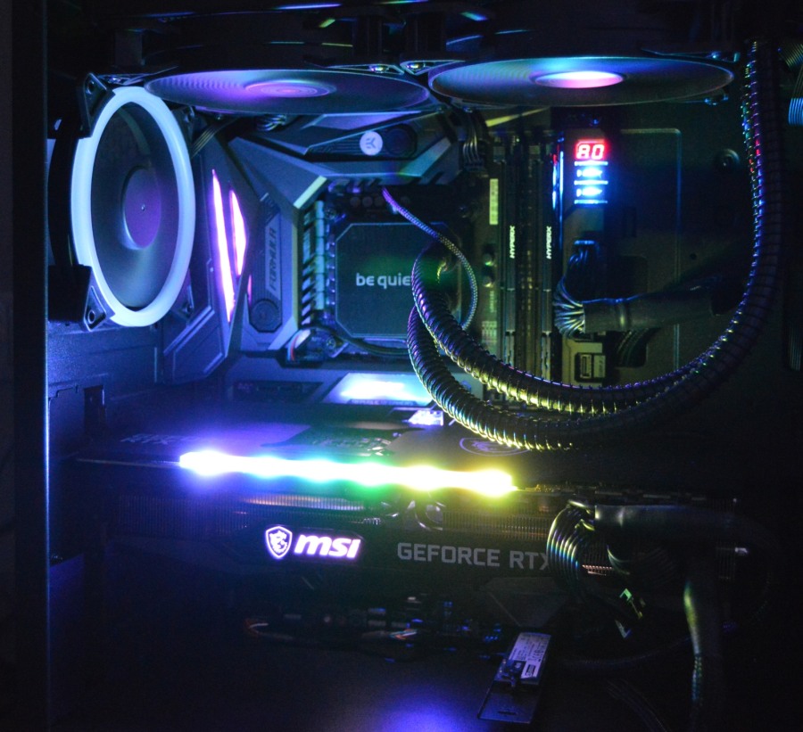 В температурно-шумовых характеристиках отличия от MSI RTX 3080 Gaming X Trio минимальны. Процессор прогревается до 76 °C при скорости вентиляторов до 1400–1500 об/мин. И это великолепный результат для монстра с TDP 350 Вт!